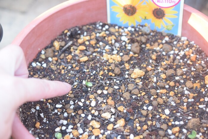 この種も植えたので、夏が楽しみ!あ、もうヒマワリの芽が出てる!