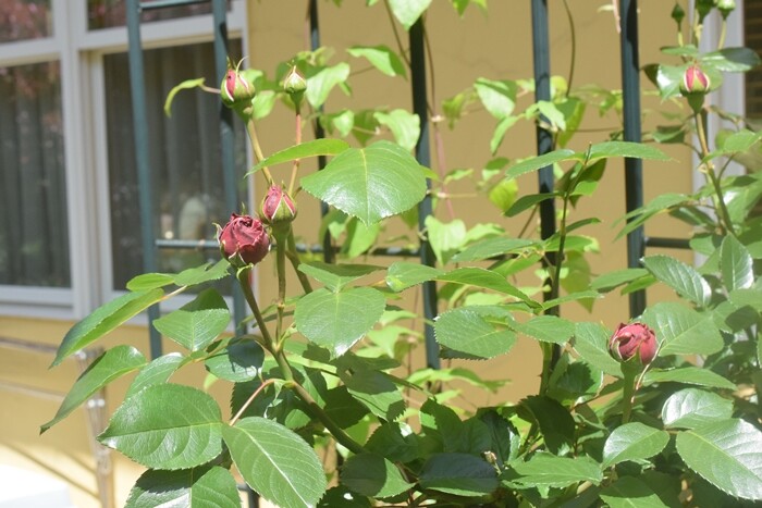 ルージュ・ピエール・ドゥ・ロンサールも大きな蕾が膨らんできています♪