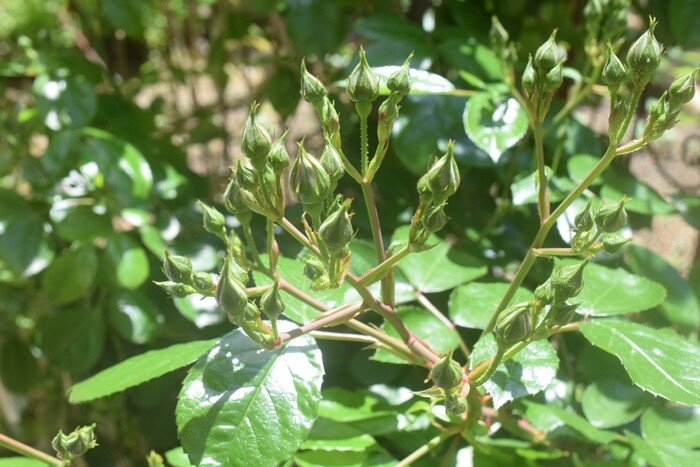 これはアンジェラです^^。この蕾の数を見ればわかるけれど、めっちゃ房咲きするのよ~
