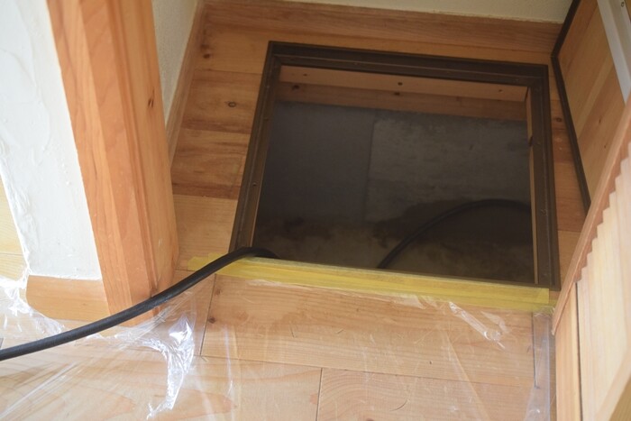 床下点検口から床下全体に薬剤を散布していただきました✨