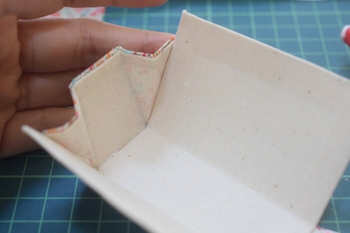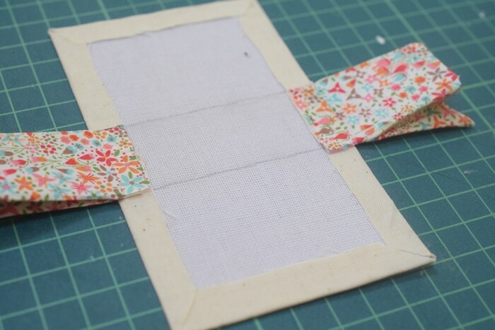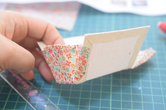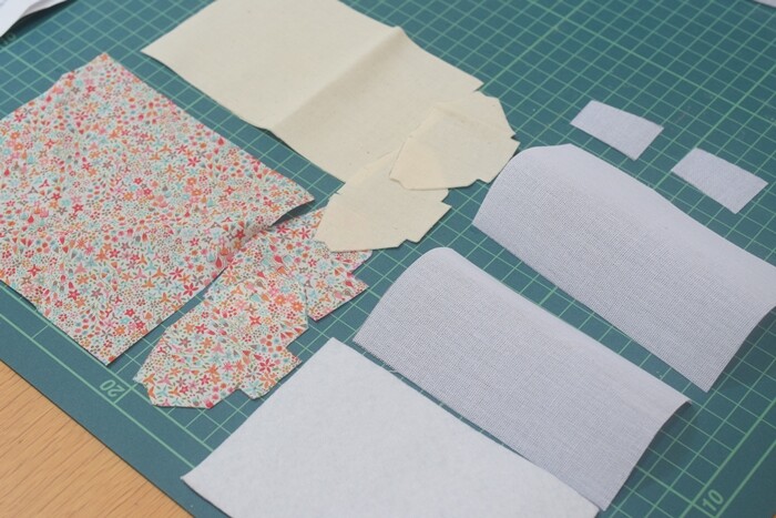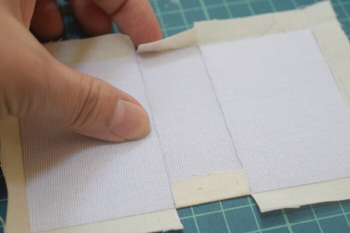 布に接着芯をアイロンで貼り付けて。縫い代はボンドで貼り付けます。