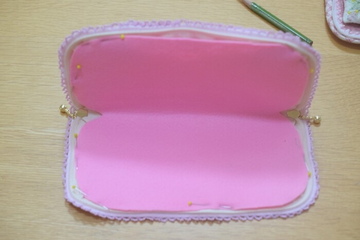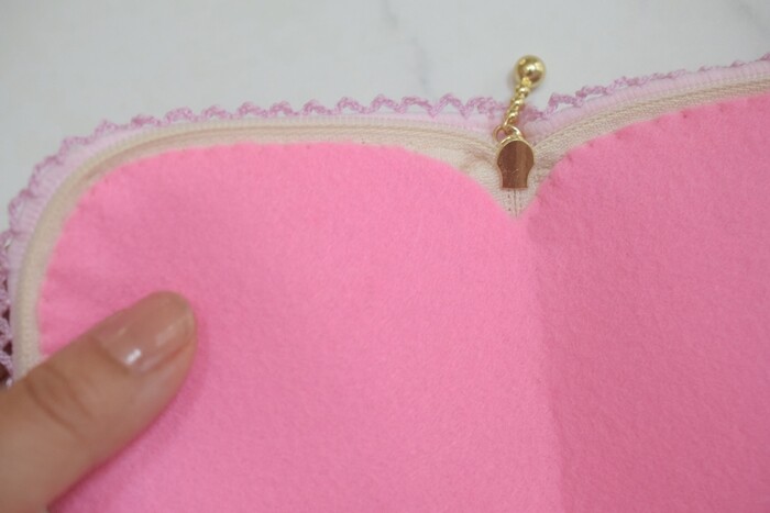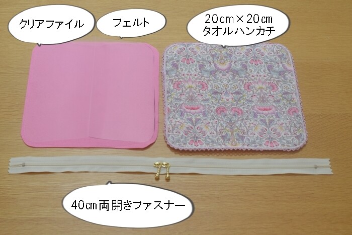 このときに、ファスナーがちゃんと閉まるように、クリアファイルとフェルトを一回り小さめにカットしなおしました。