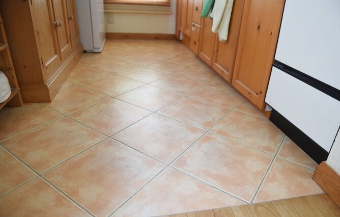 キッチンのタイルまで綺麗にスチームモップで掃除。床がサラサラになって気持ちいい!