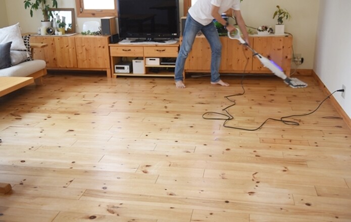 日曜日、夫と二人でリビングダイニングの床掃除をしました(・∀・)