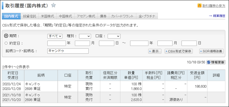 あれ、もしかして私、キャンドゥ株をまだ持っていなかったっけ??と見てみたら…(←それすら覚えていなかった)