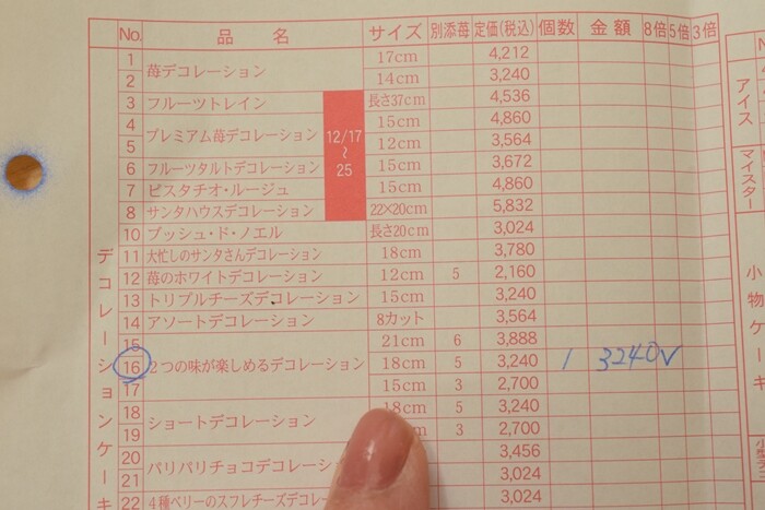 なんと、お友達のMちゃんはこの中で一番高い、12,000円もする「プレミアムケーキ」を予約すると!