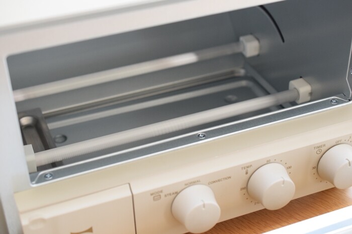 広々とした庫内で4枚しっかりと食パンが入ります。これくらい大きいと20㎝サイズのピザも切らずに入れることができますね。(焼き網のサイズは横27.5㎝×奥行き23.5㎝ぐらいです。)