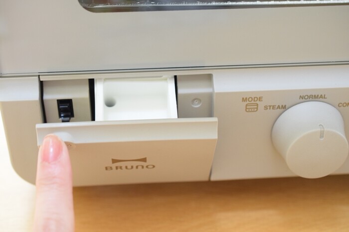 スチームにするときは横のところに水を入れて焼きます。(小さなカップも付属していました)