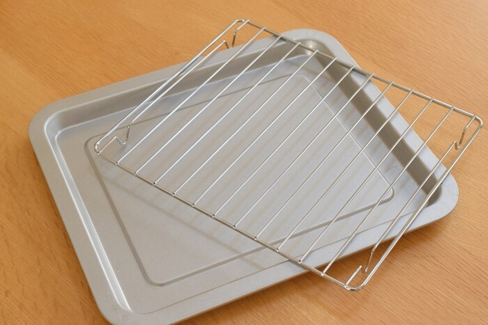 ベイキングトレイとベイキングトレイ用焼き網もセットになっていたので、ピザのように下にチーズが落ちそう!というようなものはトレイにのせて調理します(・∀・)