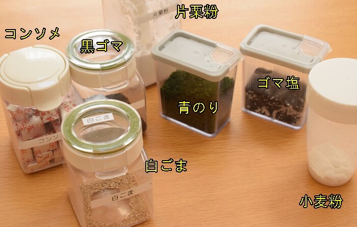 その他のスパイスや中華だしなどもそれぞれ100均のカゴに入れてグループ分けしてから戻しました。