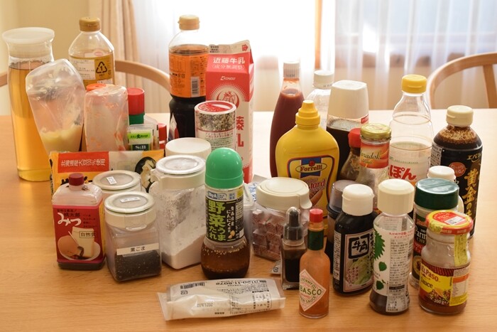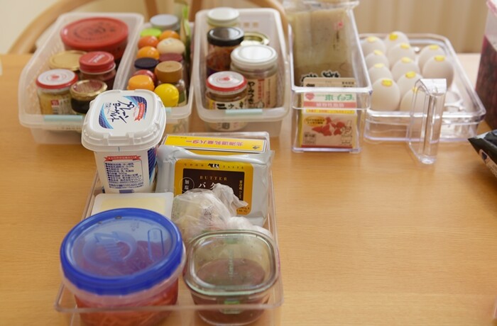 まずは冷蔵庫の扉に入っているものを全部テーブルに出しました。