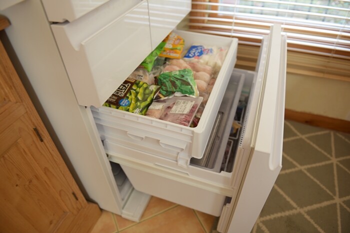 冷凍庫は3段に分かれていて、たっぷり収納できます。