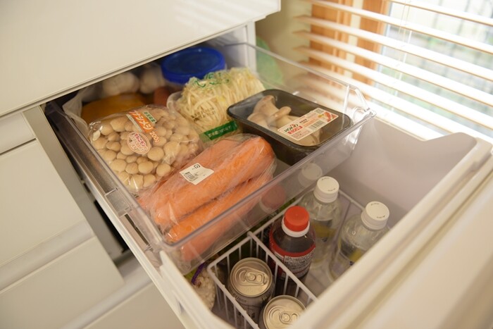 野菜室。ちょっとビールや炭酸水もここに収納しています。
