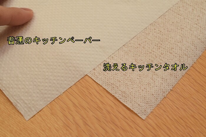 普通のキッチンペーパーとサイズを比べるとこんな感じです。