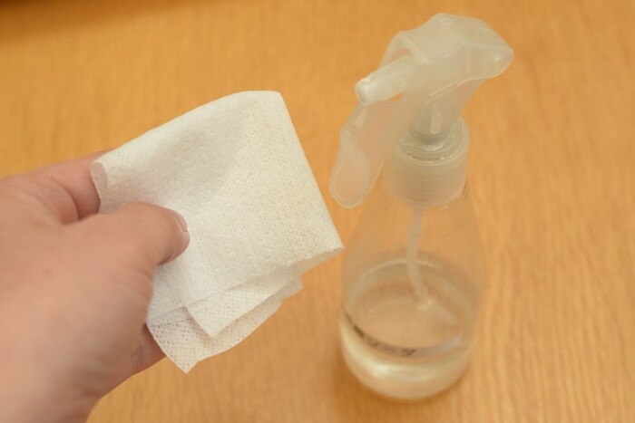 ▼セスキ炭酸ソーダのスプレーをシュッとして拭き掃除。