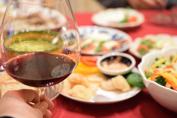 テーブルクロスの赤色 お料理が映えますね