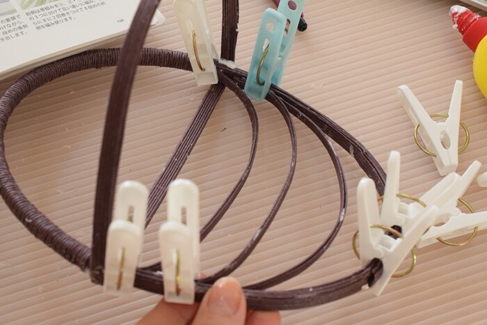 図書館で借りた本に載ってい半円形の壁掛けカゴを作りました✨