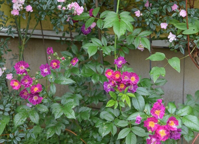 中央が黄色で周りが紫の可愛いバラです♬小さいけれど、咲いたらパッと目を引く鮮やかな色~。