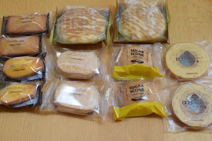 無添加バウムクーヘン すこやかの樹(2個)、北海道バターどらやき(2個)、