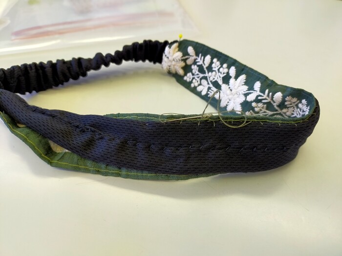 簡単に作るために、ダイソーで税込み110円の黒の無地のヘアバンドを買ってきまして。