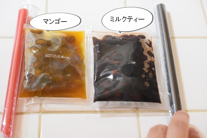 今回、ミルクティー味だけでなく、マンゴー味も売られていることを発見~!