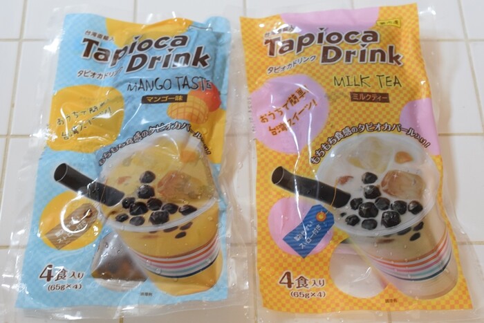 タピオカドリンク(マンゴー味)4食入り 税込み268円 1杯あたり67円