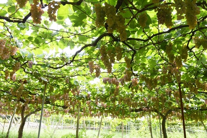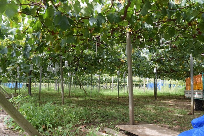 このぶどう畑はピオーネかな?ほとんど収穫した後らしいです。