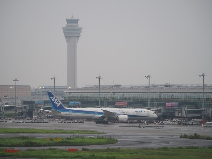 雨が降ってきたので、慌てて羽田空港へ移動しました。