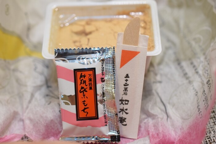 1つ1つの形は「山梨の桔梗屋信玄餅」と「福岡の如水庵筑紫もち」、そっくりですね。