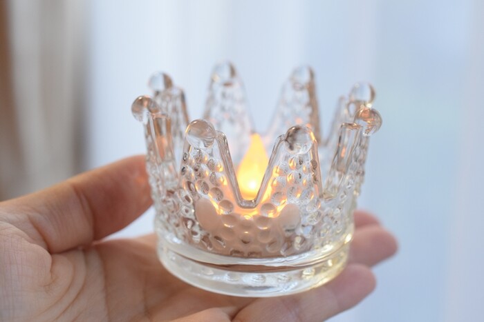 まずは、こちら。「ガラスキャンドルカップ クラウン」(税込み110円)