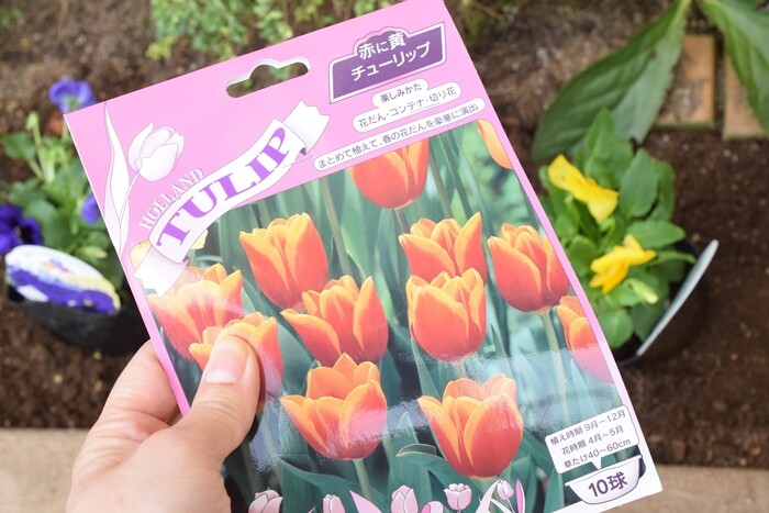 チューリップの球根は今年も赤と黄色のミックスを買いました。