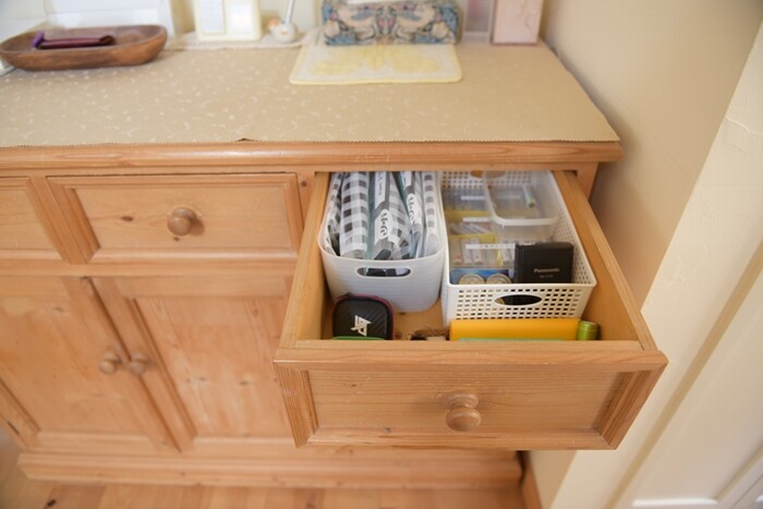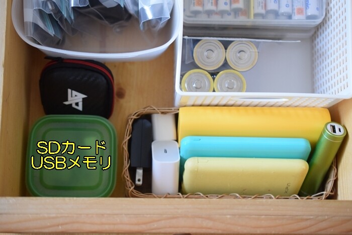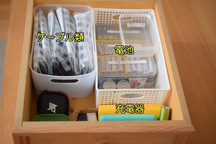 この引き出しには他に電池や充電器(モバイルバッテリー)などを入れています。