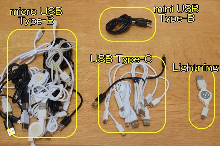 というわけで、差込口で分類してみたらいつの間にやら、Type-Bのケーブルが沢山ありすぎ。