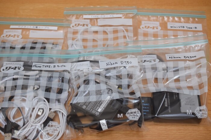 デジカメの充電セットなどもあって、せっかく分類したので、用途別に各ケーブルを分けて収納することにしました✨
