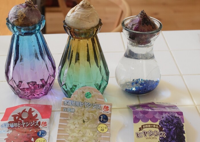 先日、近所のホームセンターでヒヤシンスの球根を3つ買ってきました。