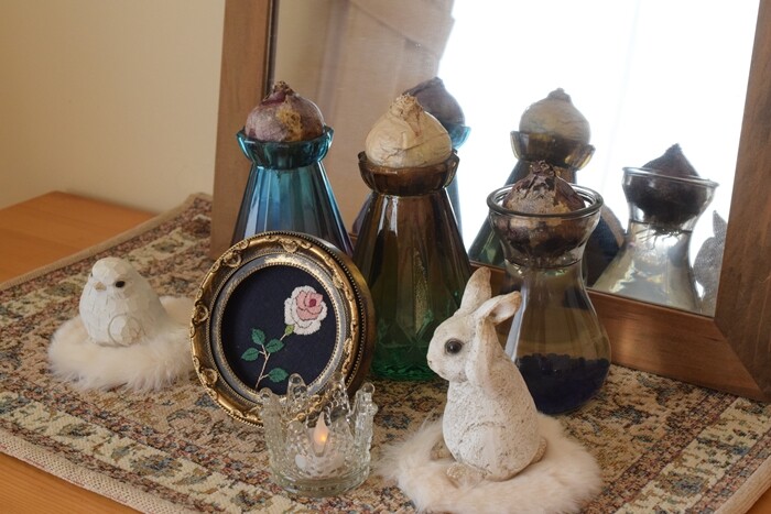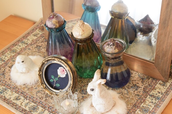 ヒヤシンスは水耕栽培できるので、寒い冬の間、家の中で成長を見守れて楽しいのよ~♪