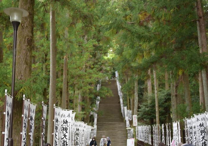 熊野本宮大社の参道脇に祈りの道(熊野古道)があってチラっと見ることができますが、滑りやすいので危ないから歩かないでとバスガイドさんに言われました(^-^;