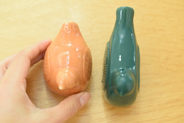 オレンジの方が丸っこいです。オレンジがお母さん、グリーンがお父さんらしいですよ~