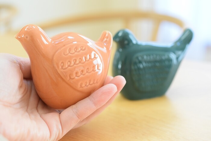 私の大好きなお店、「ナチュラルキッチン&」(ナチュキチ)で「オブジェバードファミリー オレンジ」と「オブジェバードファミリー ダークグリーン」を買いました。一つ税込み330円です。