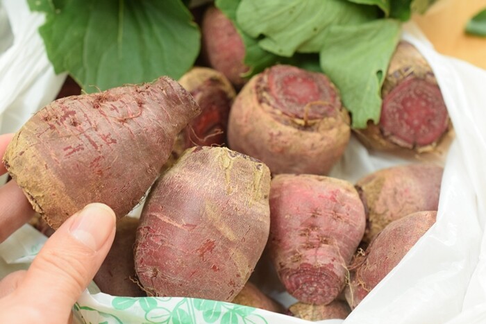 ビーツには「ベタシアニン」という赤い色素のポリフェノールが多く含まれているそうで、抗酸化作用があるんですってよ~。他にも栄養豊富なので、日本でもこれからもっと人気が出そうな野菜ですね。