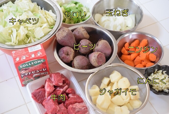 確かにボルシチに入ってますよねー。(食べたことはありません)わたしはいつも、夫が来る日に合わせて献立を考え食糧を調達しているので、ボルシチは作れませんでした(←言い訳(*°∀°))