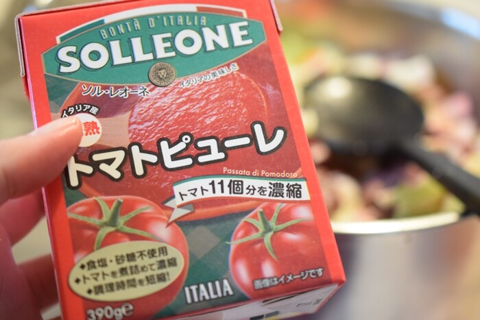 トマトピューレはオーケーストアで買った100円くらいのよ(・∀・)常備しています。