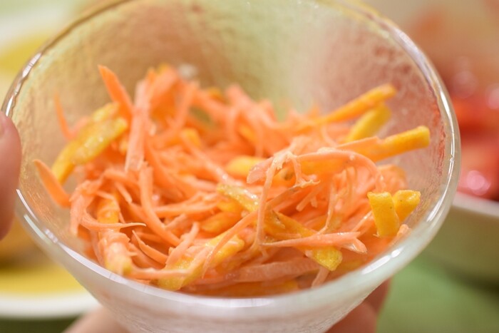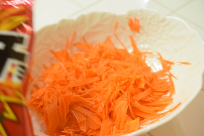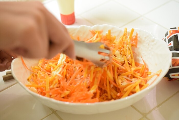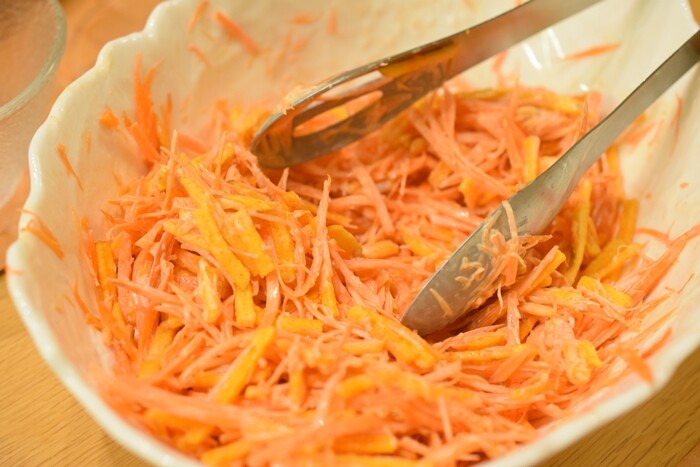 そして、去年、お友達のてんちゃんに教わった「カラムーチョにんじん」サラダを作りました♬