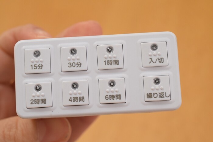 ボタンがこれだけあるから仕方ないのだけれど、延長コードに付けたりするにはちょっと大きい。