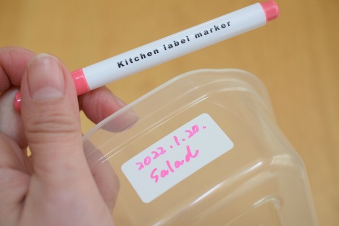 ②専用マーカーで記入。日にちとか内容物など自由に。