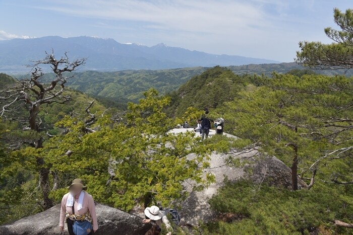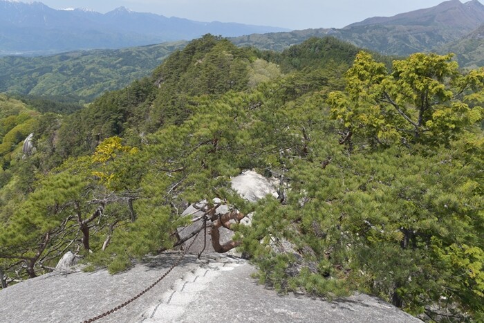 山頂付近はチェーンやロープを伝って岩を登るハードさです。