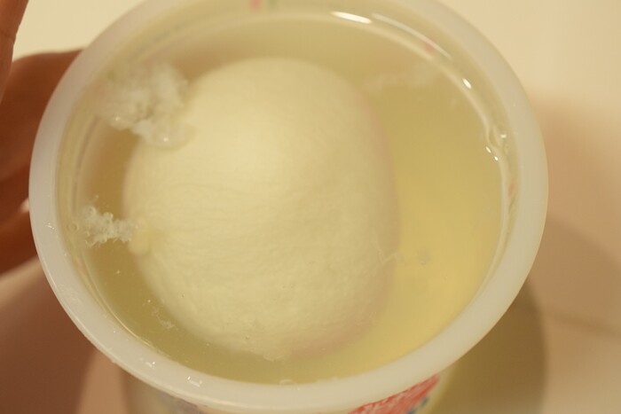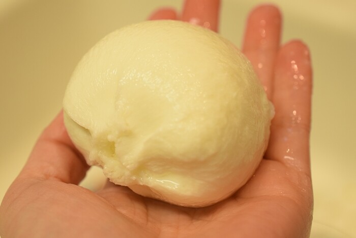 手に載せるとこんな感じ~ぷよぷよ柔らかいフレッシュチーズです。
