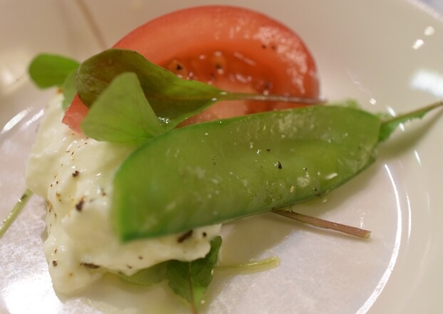 ブッラータを置いて、オリーブオイルと黒胡椒をかけてみました。