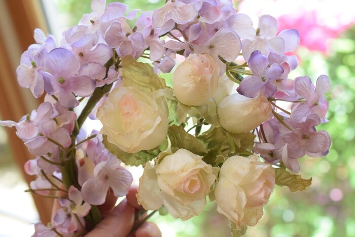 これもずっと昔に雑貨屋さんで買ったフェイクのアジサイとバラ。