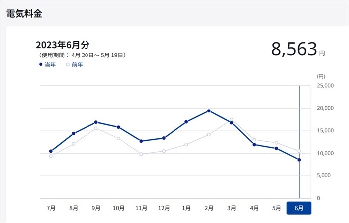 電気代は夏と冬にピークが来ています。冷房と暖房のためですね。